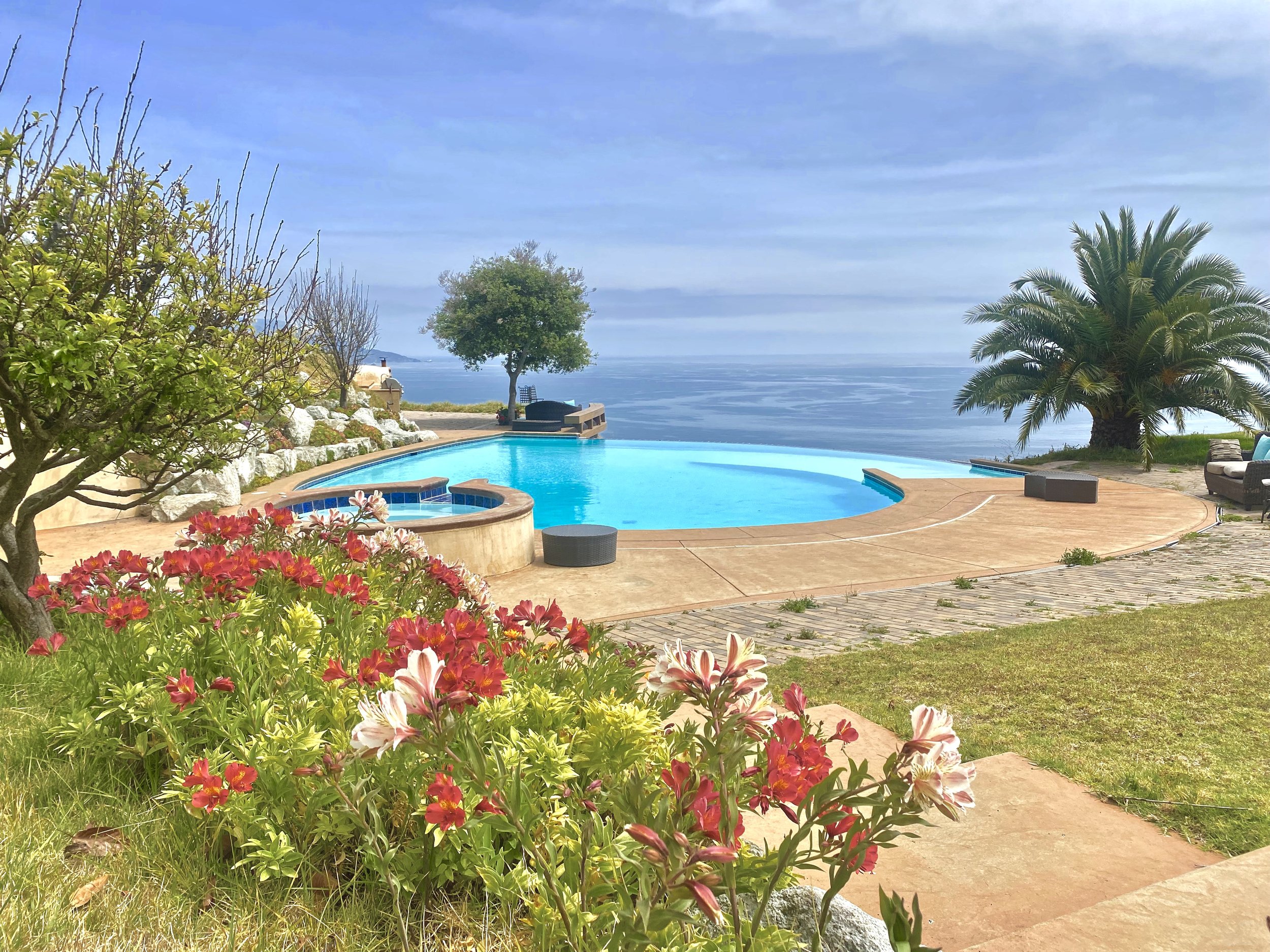 Tucked 1/2 mile off HWY 1, just 10 miles from Julia Pfeiffer Burns State Park rests this ocean-view hilltop homestead, featuring unparalleled panoramic views of the Pacific Ocean and surrounding forests. A truly rare and picturesque “off-the-grid” property in the heart of Big Sur’s iconic southern coastline that offers both comfort and luxury.
