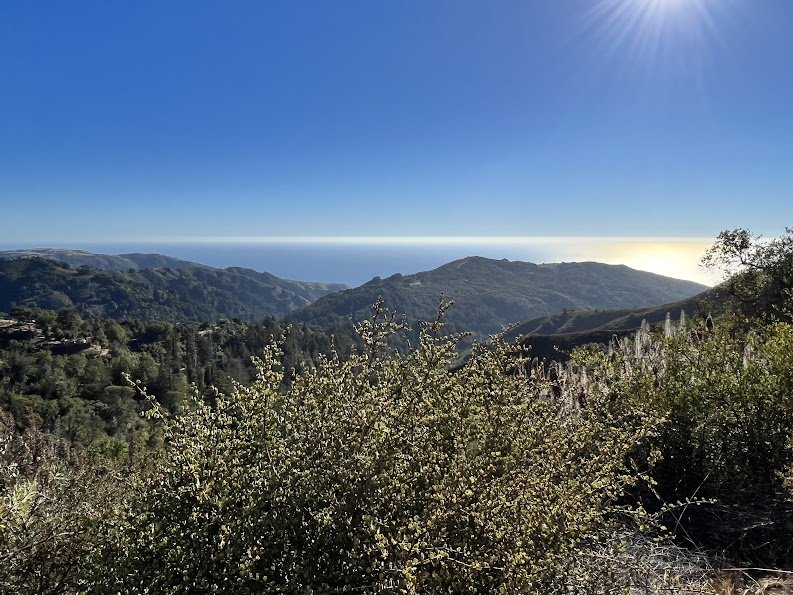 With over 5 secluded acres of oak trees, madrones, and California lilacs, the land looks out across the redwood canyons to the Pacific below and rests in an area of outstanding beauty and peace.