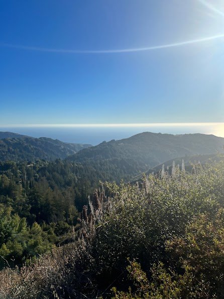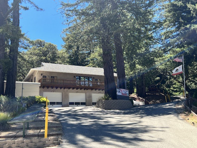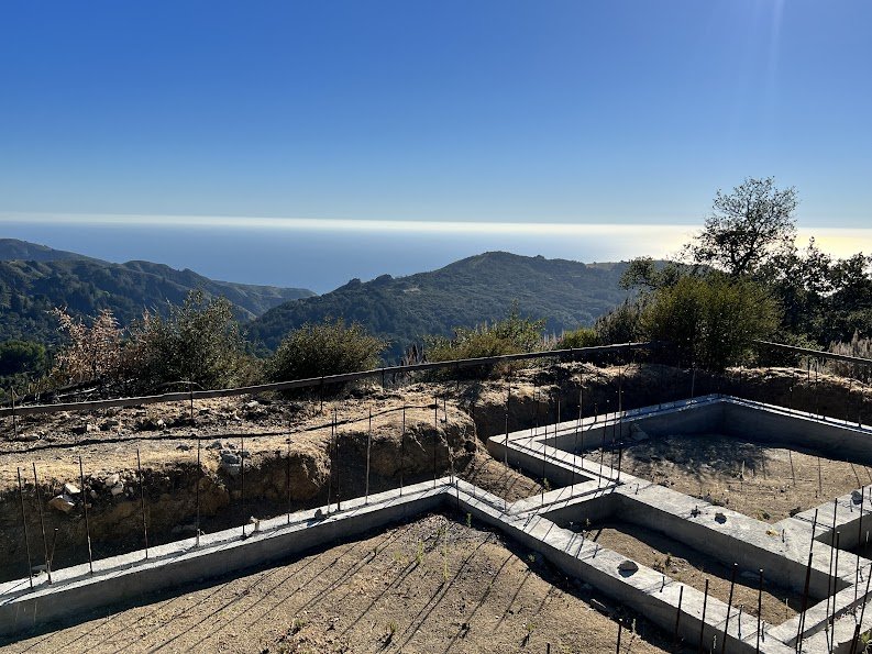 With over 5 secluded acres of oak trees, madrones, and California lilacs, the land looks out across the redwood canyons to the Pacific below and rests in an area of outstanding beauty and peace.